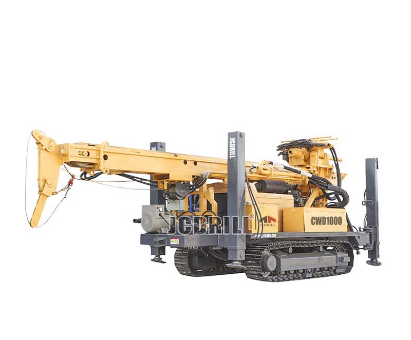 CWD1000履带式钻机可在多种地层中进行泥浆钻进(软地层)和潜孔锤(DTH)岩石钻进。潜孔锤用于岩石钻进时,采用气压排渣,在适当工况下,相较传统回转钻进效率有提升(实际表现受地质与设备配置影响)。