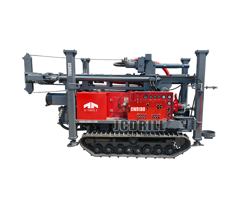 CWD180履带式钻机可在各种地层中进行泥浆钻进(软地层)和潜孔锤(DTH)岩石钻进。潜孔锤用于岩石钻进时,通过气压排渣,其现场效率是传统回转钻进的十倍。