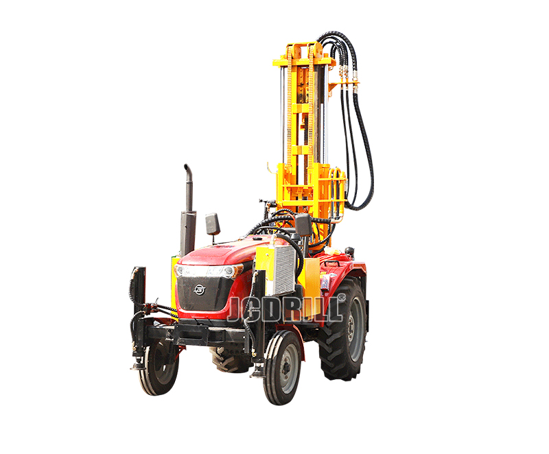 为在坚硬岩层等多种地质构造下的高效作业而设计。拖拉机式水井钻机是一款广受欢迎的机器,其设计旨在满足组合式钻机在沉积物和硬岩中完成农村供水孔的多种需求。其重量约2600公斤,可由皮卡牵引,具备多种功能。