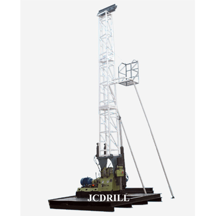 钻塔为金字塔式结构。其总重轻,单部件重量轻且拆卸量有限,便于运输和安装。钻塔自带天轮架,方便地面安装。在操作过程中,当钻机后移时,钻塔可倾斜以补偿后移距离,从而保证孔中心与滑轮中心的同轴性。钻塔可顺时针调整,用于钻进倾斜孔。调整方便快捷,调节范围广。适合钻进大角度孔。
