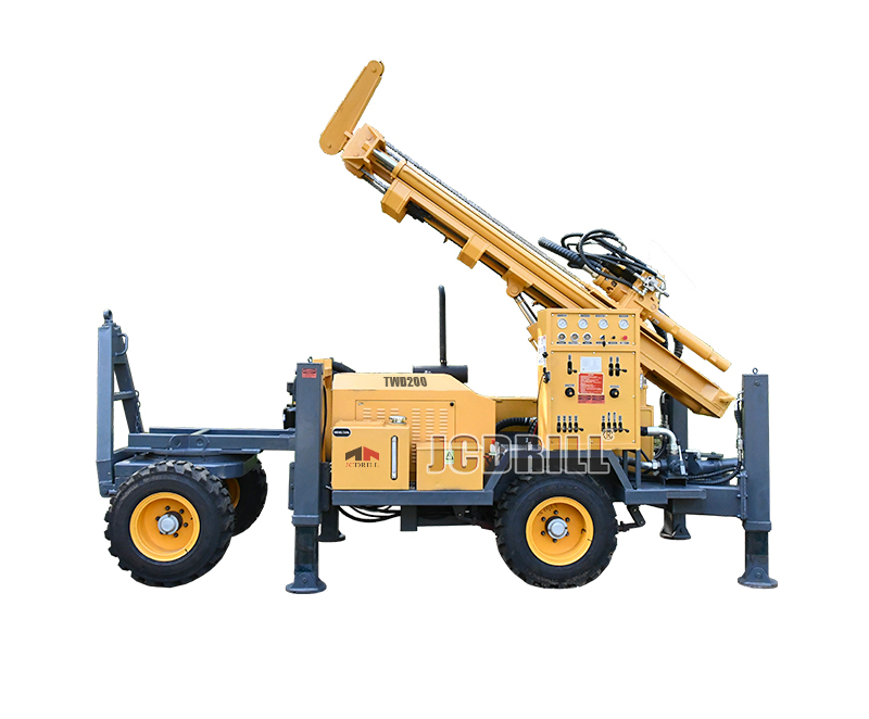 TWD200系列拖车式钻机可在多种地层中进行泥浆钻进(软地层)和气动潜孔锤岩石钻进。潜孔锤用于岩石钻进时,通过气压排渣,其现场效率相较传统回转钻进有显著提升。