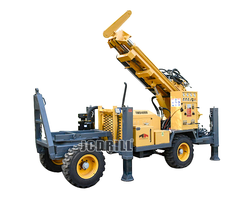 TWD400B拖车式钻机可在多种地层中进行泥浆钻进(软地层)和气动潜孔锤岩石钻进。潜孔锤用于岩石钻进时,通过气压排渣,其现场效率相较传统回转钻进有显著提升。
