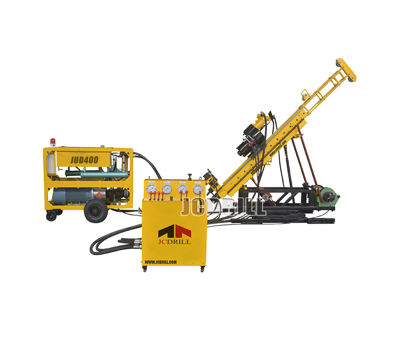 JUD系列地下取芯钻机专为地下360°全方位钻探作业而设计,能够进行金刚石取芯钻探及其他先进钻探作业。整体结构可分为控制面板、钻机本体和动力单元。其中,钻机本体包括可旋转底座、滑动钻桅、钻头回转给进系统、钢丝绳卷扬机和液压夹持器;动力单元包括电动机、电气控制箱和液压系统。此外,还可根据客户特殊需求配备专用泥浆泵。